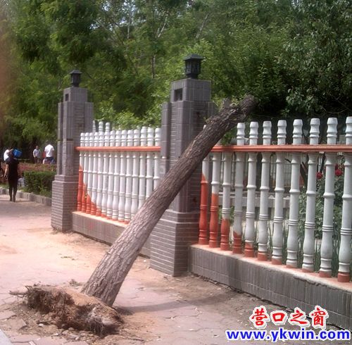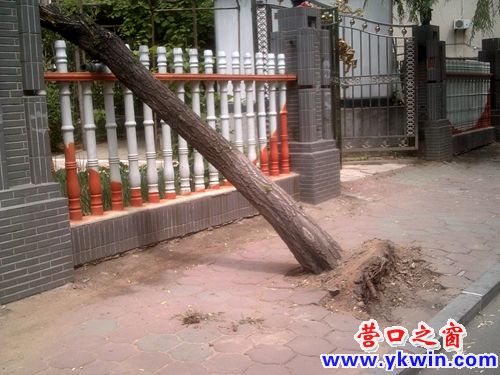 截至6月7日,5月3日的小台风已经过去一个多月了,可被小台风刮倒刮歪的树依然没有完全清除,营口楞严寺公园南墙外人行道中就有一棵锯掉树冠、只剩树干的歪树靠在护栏上,成了名副其实的拦路树。树到今日应该把它扶正,并给予特护,看看它能否重新长出枝叶,如果能那就皆大欢喜,而不扶、锯掉和拔出都是使不得的。