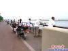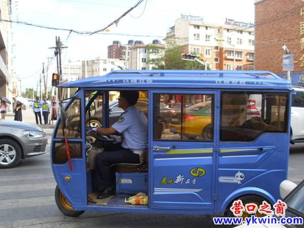 多辆三轮车在营口大润发超市门前因闯入禁行路被警察抓扣,随后,警察骑上三轮车蹬往队里。