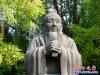 在营口楞严寺公园,站在孔子等六位文化名人对面还有六位中国古代大师级的人物。他们是:治水有方的大禹、神机妙算的诸葛亮、发明地动仪的张衡、计算圆周率的祖冲之、治病神医华佗和发明造纸术的蔡伦。他们同样应该做客营口之窗。9月3日摄。