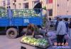 在公园路南段的菜场上,红的萝卜、苹果、地瓜,绿的白菜、大葱、香菜,白的大米、粉条等五颜六色的各种农产品粉墨登场。