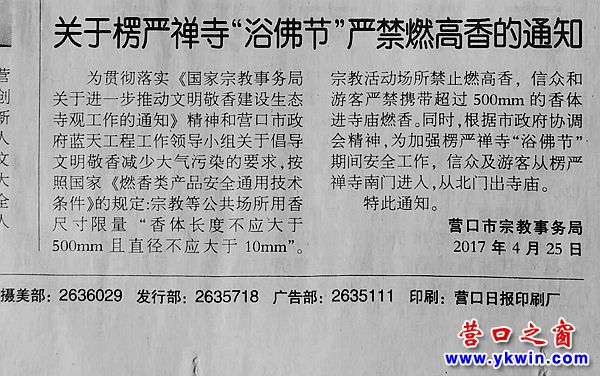 又是临近一年一度的营口楞严寺农历四月初八(浴佛节)庙会,发现,近日寺庙周围挂起十几个条幅,分别写着楞严寺公园内禁止摆摊与严禁庙会期间占道经营等。