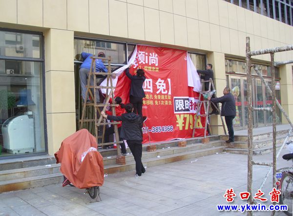 乘着十九大的东风,抛锚了好几年的原营口东升百货航母已经苏醒,现正在内外装修,备战备航准备重新起航。截至11月6日,该航母东半部的外墙已装饰一新,位于一楼东部的一家服装店和格力空调店现已率先营业。11月6日9点多钟,空调店的几名员工还把促销广告贴在大玻璃窗上。