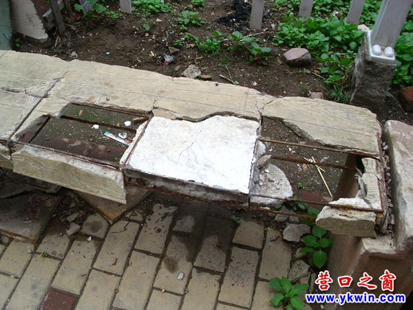 6月11日,见到营口市渤海明珠小区B区15号楼门前的两条长凳全都缺肉,缺肉之多都可以掉下屁股。