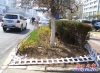歪树被车剐蹭的痕迹