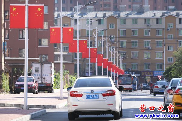 国庆临近,营口市西市区平安社区东侧道路的灯杆上悬挂起了崭新的五星红旗,整齐划一的五星红旗让街头处处洋溢着一派喜迎“国庆节”的浓烈氛围。
