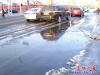 新兴大街“涌泉”已经止住,提醒路人注意残冰