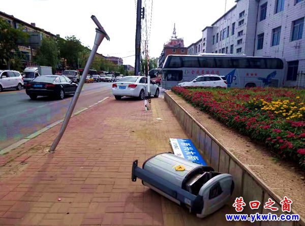 (营口之窗网讯 胡然)7月21日8时,在营口市盼盼路路口,因司机身体突发不适,将驾驶的白色雪佛兰轿车意外开到新兴大街旁的人行道上面,一块路牌和一个垃圾箱瞬间被撞掉撞倒,司机随后被送往医院救治。