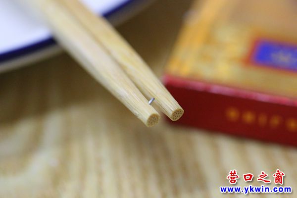 (营口之窗网讯 李凯)日前,在营口市西市区某饭店就餐时,发现一次性方便筷子头上镶了个“暗器”——铁钉,真悬啊~
