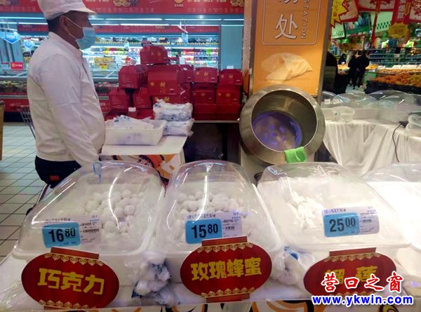 (营口之窗网讯 胡然)2月10日(正月初十),营口的月亮仅圆了三分之二,而各超市里圆圆的元宵已在恭候市民了。在营口市大润发超市和锦联超市见到各种元宵一应俱全,价格最低是什锦元宵9元一斤,最高是榴莲元宵25元一斤。现在已有零星的市民开始购买,预计购买元宵的高潮即将到来。