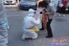 在小区内的核酸检测区域,志愿者分批次维持现场秩序,提醒现场排队的居民自觉保持安全距离,并帮助不方便使用手机的老人进行“营畅通”登记和扫码。