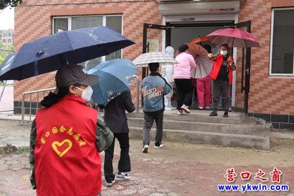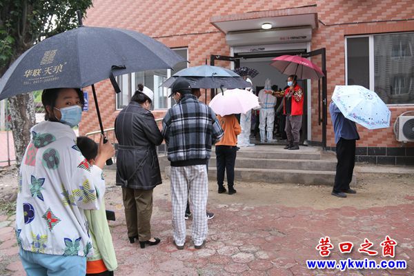 5月26日,营口迎来降雨天气,营口市西市区西市场社区启动第十一轮全员核酸检测,虽然下着雨,但现场秩序井然。