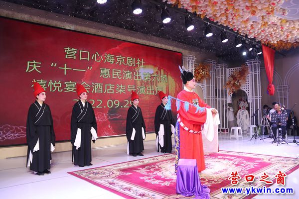 (营口之窗网讯 李凯)为了纪念中华人民共和国成立73周年,进一步丰富我市群众精神文化生活,大力营造欢乐祥和的文化氛围,9月29日晚,营口心海京剧社庆“十·一”惠民演出(第六场)在市禧悦酒店柒号演出厅精彩上演。