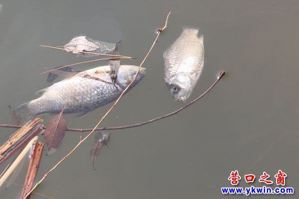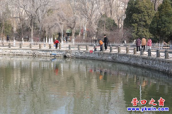 营口之窗网讯(李凯 摄影报道)春来冰融,乍暖还寒,3月17日,笔者在营口市镜湖公园看到,公园人工湖漂浮一些死鱼,这些死鱼看起来个头还不小,不少都已“长毛”。园里的工作人员表示:死鱼不可食用,正在排查原因。