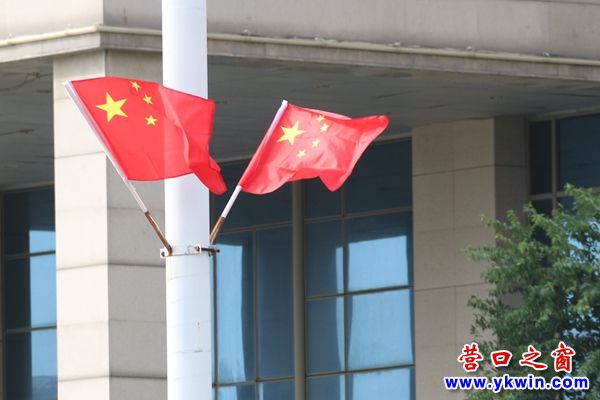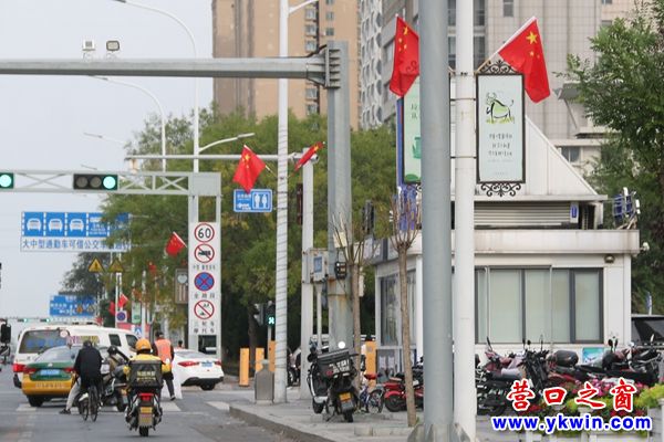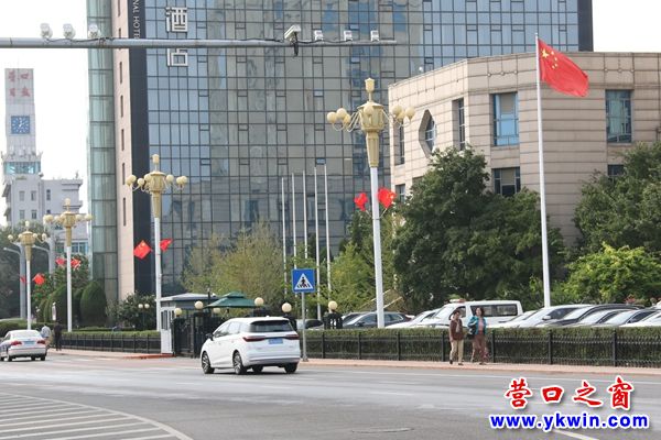 营口之窗网讯(李凯 摄影报道)国庆将至,营口市区街道两侧,一面面鲜艳的五星红旗迎风招展,靓丽的“中国红”与道路两旁的绿植相得益彰,共同构成立体景观视廊。