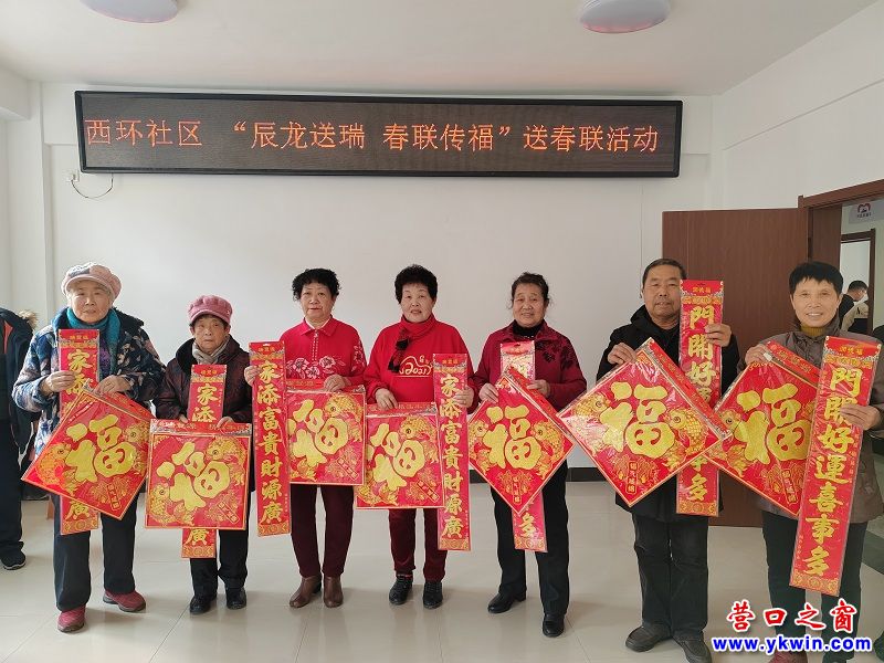 (营口之窗社区讯)新春将至,为弘扬中华优秀传统文化,表达新年祝福,营造喜庆、欢乐、祥和的节日气氛,增进邻里情,丰富社区老党员的文化生活,近日,西环社区党委开展“辰龙送瑞,春联传福”迎新春、送春联活动。