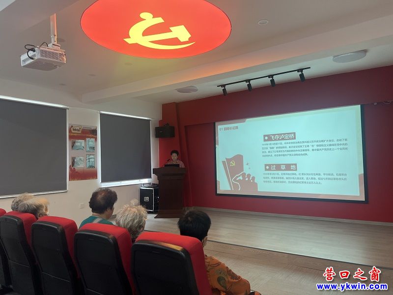 (营口之窗社区讯)为进一步弘扬党的光辉历程和丰功伟绩,激励党员感党恩、强党性,西环社区党委邀请渔市街道基层党校培训教师、第二党支部委员于西环社区红色放映厅讲授“弘扬长征精神 重温红色经典”主题党课。