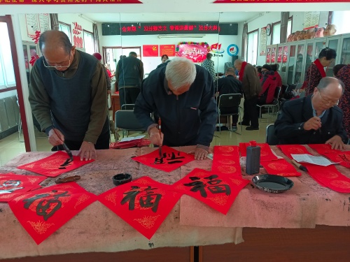 演出现场,由社区合唱团的老党员们精心编排了合唱《红梅赞》、《祖国》、二重唱《小白杨》、独唱《好日子》、《绿色军衣》、《珊瑚颂》等十余个节目。老同志们演唱的歌曲唱出了对祖国的热爱,同时又为在座的居民群众送上新春的祝福。活动中又融入春节传统文化元素,社区书法协会的老党员志愿者,现场挥毫泼墨,为居民群众书写有迎春纳福寓意的春联和福字,同时还有非遗文化剪纸窗花的展示;受到在场党员群众的欢迎。