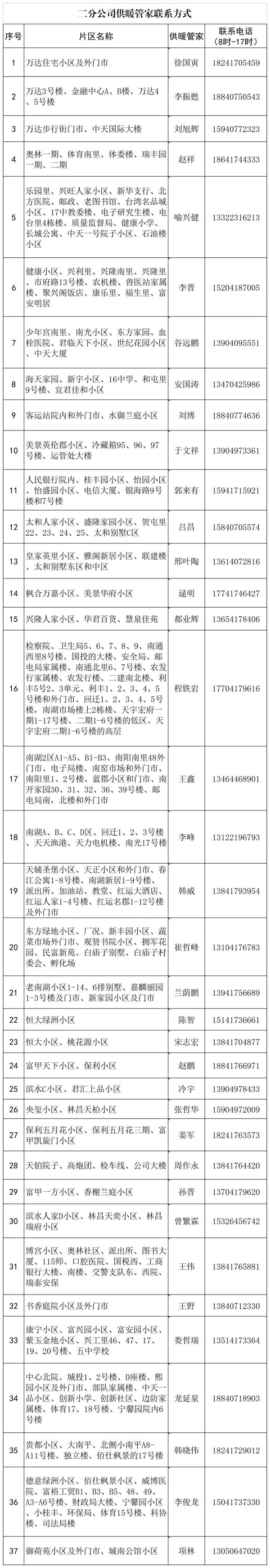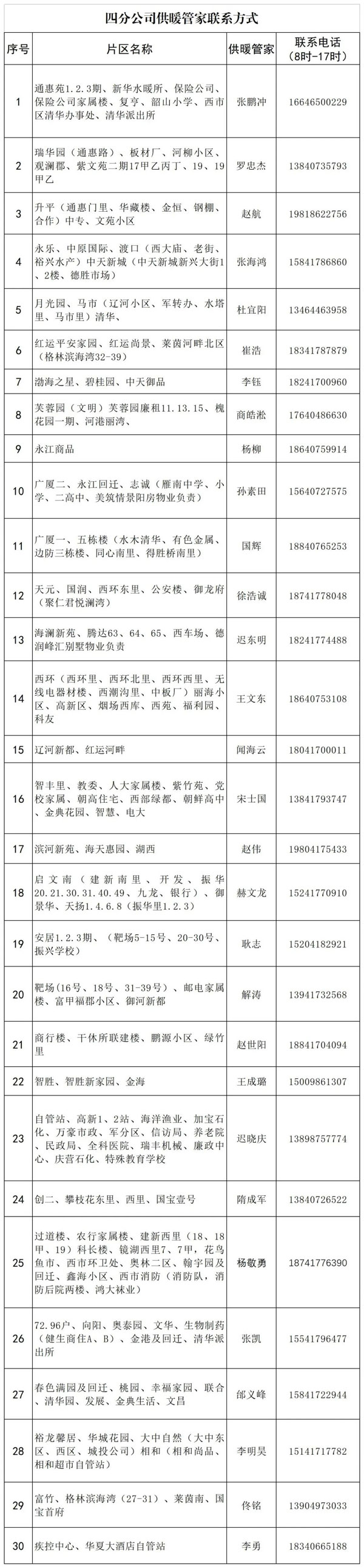 为确保2025-2026年度冬季供暖工作稳定运行、服务高效便捷,现将我集团各供暖区域供暖管家联系方式予以公示,热用户如有任何供热需求请拨打营口热电集团客服热线或联系所属区域供暖管家。