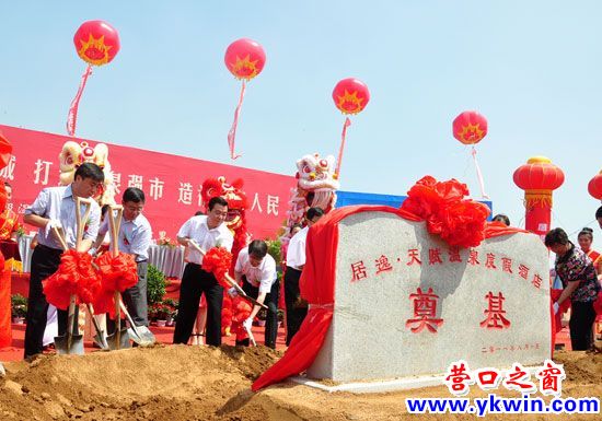 辽宁省副省长邴志刚(左三)营口市委书记魏小鹏(左四)等省、市、区各级领导出席了奠基仪式并为“居逸·天赋温泉度假酒店”项目挥锹奠基。