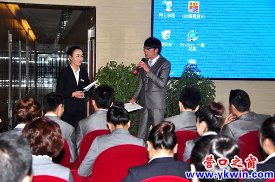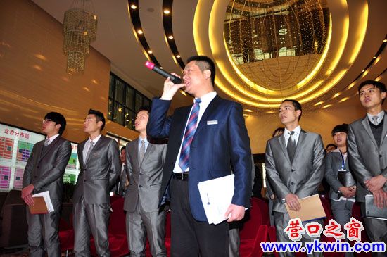 “那一天我不得已上路,为不安分的心,为自尊的生存,为自我的证明……”11月28日早8点30分,营口室气温降至零下7度。在许多房地产公司的销售中心的大门还是紧闭着的时候,歌曲《在路上》的激情旋律已经在营口洲盛国际小商品五金机电博览城的大厅里回荡。与室外的滴水成冰相比,他们每周一次的全员培训总会却依然热情如火。