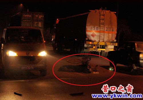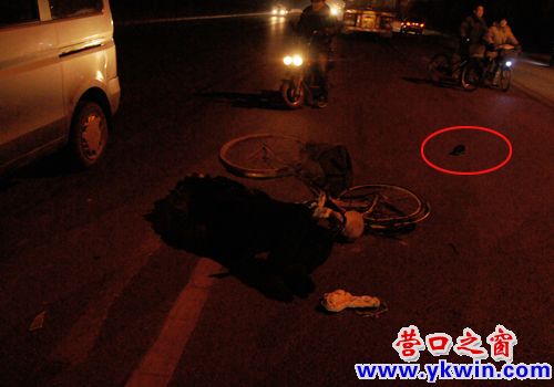 自行车后轮被压扁,两只鞋子散落在相距5米远的地方,受伤的男子昏迷不醒。