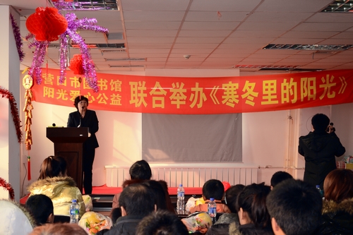 营口市图书馆联合阳光爱心公益于2012年1月3日下午1:30分在营口市图书馆8楼联合举行《寒冬里的阳光》大型主题公益活动。本次活动由阳光爱心公益、营口市图书馆联合主办,以及网络媒体营口之窗网站独家支持。