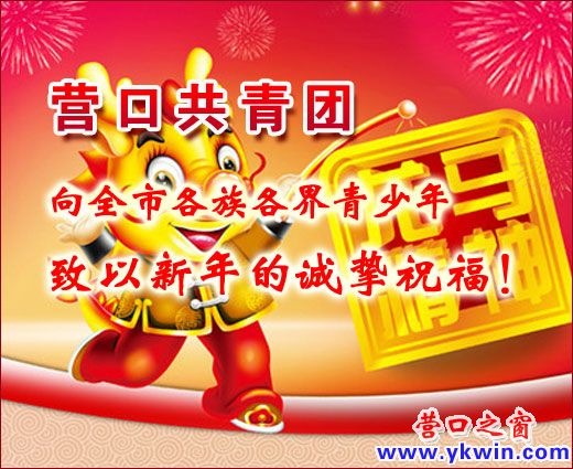 青春建功迎盛世,营口崛起庆丰年。值此岁序更迭、辞旧迎新之际,共青团营口市委、营口市青年联合会、营口市青年创业促进会、营口市学生联合会、营口市少先队工作委员会、营口市青年志愿者协会,向长期以来重视和关心共青团工作和青少年事业发展的各级党政领导和社会各界表示衷心的感谢!向奋战在营口各项建设事业工作岗位上的广大共青团战友表示崇高的敬意!向全市各族各界青少年致以新年的诚挚祝福!