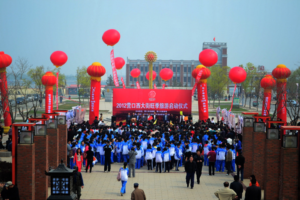 5月1日上午10点整,2012营口西大街旺季旅游启动仪式在营口市辽河老街广场隆重举行,营口市政府副市长王笑柳等领导同志为启动仪式揭幕,会后营口老街负责人陪同领导同志参观了营口文化名人馆等景观,本次营口西大街旺季旅游启动活动游人很多还吸引了许多来自盘锦的游客。