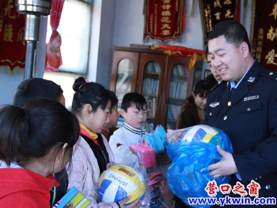 团员警官向孩子赠送文体活动;