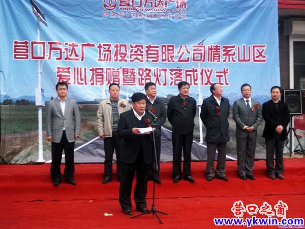 10月29日上午,营口万达广场投资有限公司情系山区爱心捐赠暨路灯落成仪式,在我市小石棚乡圆满结束。