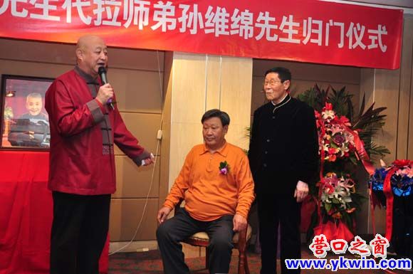11月9日上午,“白全福先生收徒.杨志刚先生代拉师弟孙维绵归门仪式”在裕龙阁酒店二楼举行。营口市文联、营口曲艺家协会、及来自京津地区的曲艺界名人等近百位群众参加了此次活动。