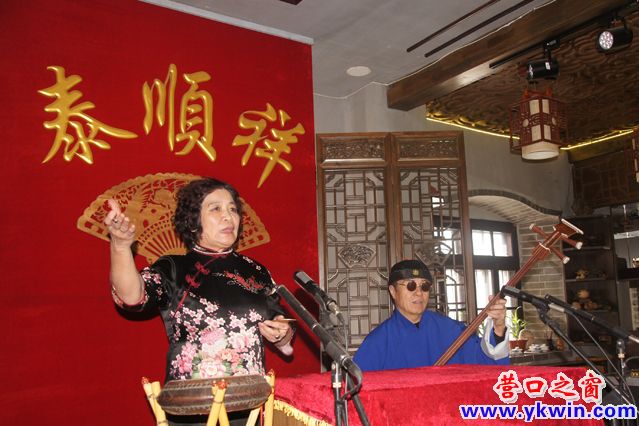 夜幕低垂,华灯初上。辽河老街西部传来婉转的唱腔和阵阵的鼓乐声:“辽河大桥真壮观,港口建在鲅鱼圈,辽河老街两边建,游人尽情去休闲,住宅小区建得美,绿草红花映蓝天,空气新鲜辽河岸,健身器材连成片,白沙湾美如画,鸥鸟齐鸣绕蓝天……”李玉珍的一段西河大鼓吸引人们走进泰顺祥茶楼。