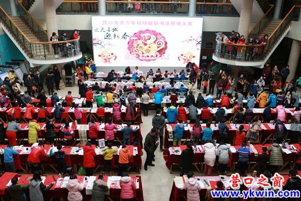 2016年1月17日是农历的腊月初八,营口市200余名青少年齐聚青少年宫大厅,共同参加“青少年宫第十五届假日欢乐宫活动之‘欢天喜地迎新春’营口市青少年现场楹联书法剪纸大赛”。