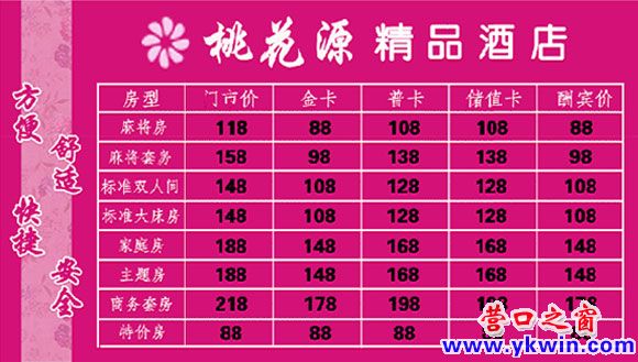 桃花源精品酒店以便民为主要特色,拥有甜蜜主题房、温馨家庭房、商务套房、舒适大床房、棋牌室和会议室,共计125间,房间配有圆床、恒温水床等现代设施,犹如躺在母体里的睡眠感受,促进缓解疲乏之感,同时配有空调、卫星有线电视、全覆盖Wifi、国内国际直拔电话,送餐预定等多项细微服务,是便民贴民的经济型酒店。