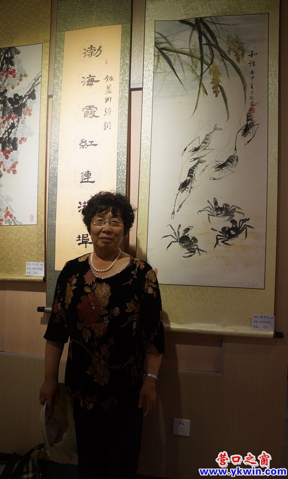 当日,营口美老年书画展现场人头攒动,近200幅书画作品向观众展出。来自老年书画研究会的会员鲍彩凤女士告诉笔者,今年的画展主题是营口美:“我想到螃蟹和虾是营口一个特色,所以我选择画这样一幅带有螃蟹和虾的书画作品。”这时旁边一位看画展的人向鲍女士请教螃蟹腿的毛用几笔画出来的,鲍女士耐心为其解答道:“这是我向一位100多岁的老画家学的。”鲍女士,边说边传授画技。