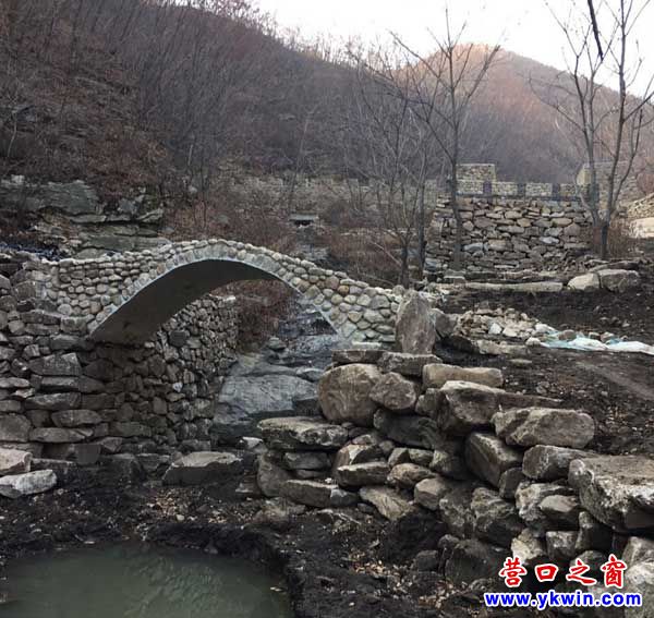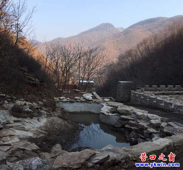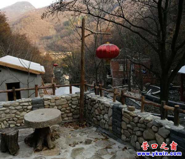 金蟾岩”对应。自下而上的水系工程直通山顶,拱形的桥下积攒的一潭深水都是山上的水,春天来临时,定有潭清、叶绿、花红的美景等着你。过桥,一处打好基础的文化广场,令人顿生别有洞天之感。坚信这里是一个风水集合地。再环视近处叠山里的点景、夹景、框景中都顺势而建抱璞归真的客舍领地。有的在山岩间拓一平地,客人可以在古朴的庭院中入住,晚间,倚天摘星、枕涛(山水)入眠的惬意不可言状;有的庭院,给你 “客舍青青柳色新”的遐想。不信你看看特意从山村农户家买来的带着沧桑烙印的房门,看看庭院中,以日久年深的枯树墩为凳子、以磨盘为桌,围成的乡间农家风情…如果从美学角度评价,这里是“自然的美,美的自然”!