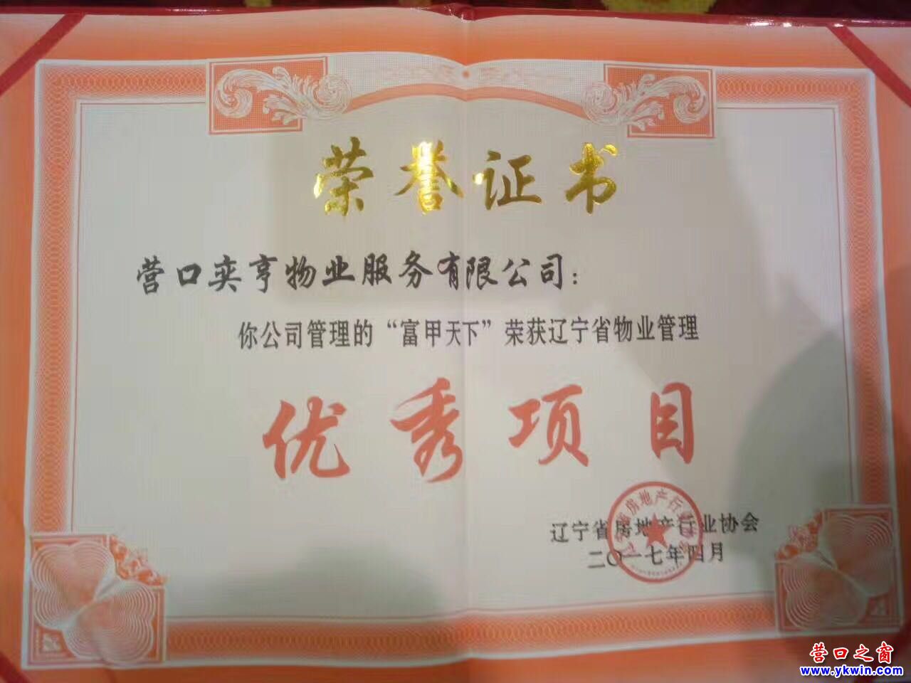 日前,营口奕亨物业服务有限公司管理的“富甲天下”获省级物业殊荣——辽宁省物业管理优秀项目。