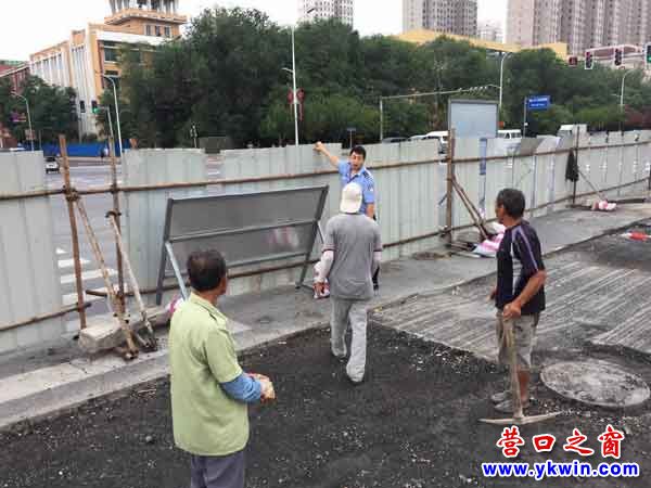 在新兴大街路段,新华路翻修工程正在进行,施工围挡就设置在非机动车道旁。辖区二中队执法人员检查中表示,一旦施工围挡禁不住暴雨侵袭,将对行人车辆带来极大不便。执法队员首先来到新华路新兴大街段施工工地,找到了施工负责人,对其进行台风期间户外广告设施安全宣传,协助和督促施工单位对其户外广告设施进行全面安全检查。