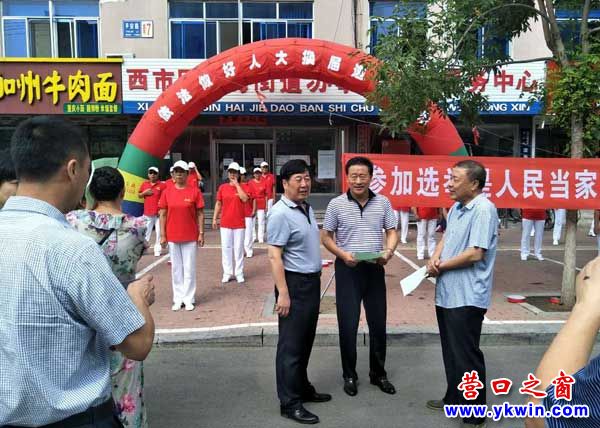 营口市西市区滨海街道办事处连同金牛山社区选举委员会共同开展人大换届选举宣传活动。西市区政府领导、办事处书记、副书记、社区党委及广大居民参加了宣传活动。