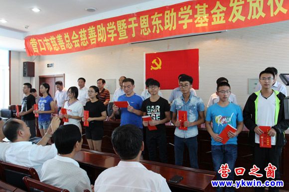 慈善助学暨于恩东助学基金发放仪式上,现场于恩东先生出资3万元,营口市慈善总会出资9万元,为我市40名品学兼优的贫困学子捐资助学。