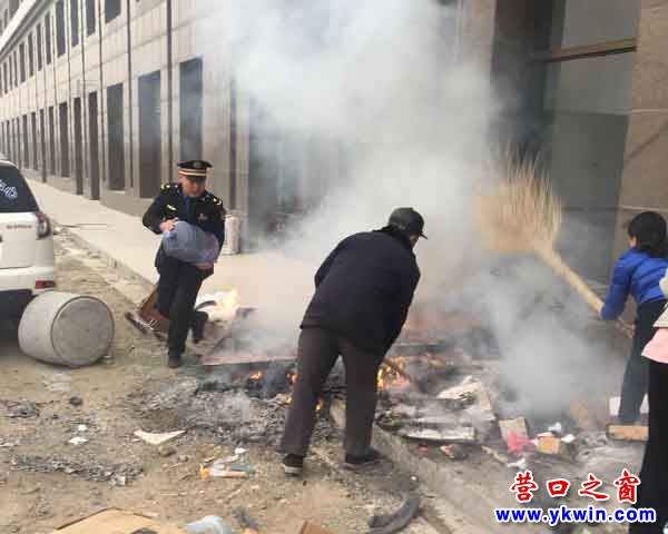 (营口之窗网讯 孙健)2017年12月14日15时20份,市城市管理综合行政执法局西市执法大队第六中队在辖区巡查管理时,发现东海大街智胜新家园南门外浓烟滚滚,并伴随大火燃烧发出刺耳的“啪啪”声,当时形势十分危急。中队全体执法队员第一时间冲到起火点。为了避免火势蔓延到室内造成不必要的伤害,执法队员一方面拨打119消防火警电话,另一方面及时将执法车辆警灯打开提醒过往行人远离火场,并抽调一名队员提醒过往车辆和行人绕行,一名执法队员立即狂奔到50米开外的水站,借来桶装饮用水进行灭火。其余队员将起火点周围的可燃物迅速搬离火场,在执法队员和商家的共同努力下,近半小时的连续扑救,火场被彻底扑灭。因为灭火及时,所幸火势没有蔓延到该商户室内。面对被浓烟搞的“灰头土脸”的执法队员,该商家一边感谢并一再询问姓名,而队员只是简单说了声不客气就悄无声息的离开了现场。