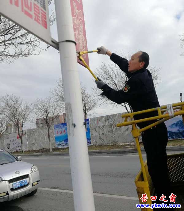 按照营口市创建全国卫生城市工作部署和要求,市城市管理综合执法支队迅速开展街路两侧路灯杆广告牌匾清理整治工作,对陈旧破损,影响城市市容观瞻的广告牌匾进行集中拆除。