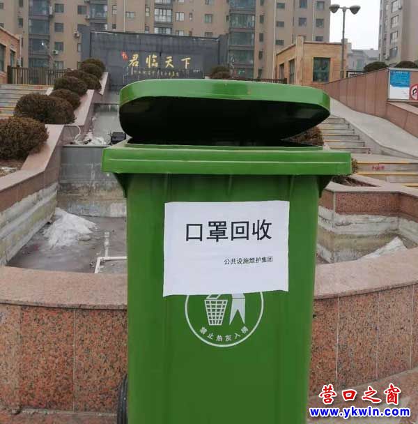 (营口之窗网讯 马俊福)鉴于新型冠状病毒肺炎发展形势,营口市口罩使用量激增,为防止“废弃口罩”造成二次污染等问题,市住建局公共设施维护中心开始在各小区投放专门收集废弃口罩的垃圾桶,请大家将废弃的口罩放入回收桶内,以便集中收集处理。疫情无情,人有情,一份为了大家,更是为了自己的责任。