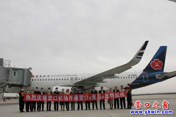 (营口之窗网讯 梁青)2020年5月7日13:00整,随着青岛航空A320飞机在海航集团旗下营口兰旗机场(以下简称“营口机场”)缓缓落地,标志着新增的营口=青岛=昆明航线正式开通。该航班由青岛航空公司执飞,航班号为QW6155/6156,班期为每周二四六。营口机场董事长兼总经理韩爱民、副总经理刘莉及员工代表在机坪举行了简短的欢迎仪式。此次青岛、昆明航线的开通,标志着营口机场的发展又迈出了具有里程碑意义的一步。该条航线架起了营口地区与西南地区的空中通道,为两地在经贸、旅游、文化等方面交流协作搭建起新的平台,为广大旅客的出行提供了更多的便利。营口市民可以乘坐航班到达青岛、昆明这两个旅游城市,体验美丽的滨海之城和西南边陲的少数民族风情。