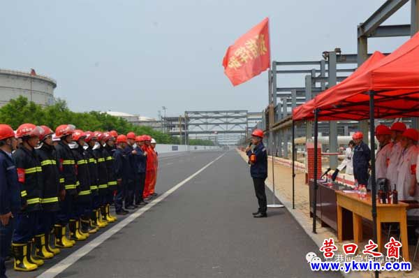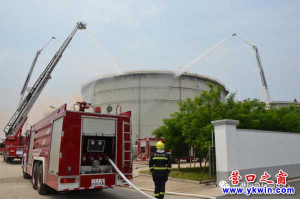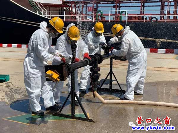 (营口之窗网讯 于娟)昨日,营港应急保障中心与仙人岛码头公司开展危险化学品生产安全事故暨港口设施保安事件综合应急救援演练。演练中经过近一个小时的紧急排险,应急人员成功抓捕恐怖分子、堵漏乙醇泄露管线、扑灭T-105石油储罐火灾。