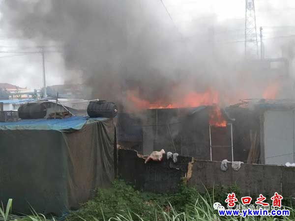 7月14日下午14点56分,应急保障中心仙人岛港区消防队接到辖区报警电话,位于仙人岛码头公司二库区大门对面不远处的一外委单位的彩板房起火。执勤中队长班兆福、梁远龙一边立即上报中心、一边迅速带队集合,出动三台消防车、16名消防队员,五分钟赶到事故现场。