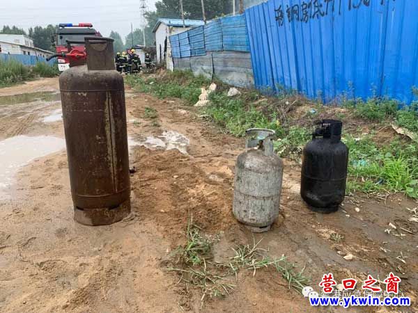 事故发生在一个彩板房连片的区域,火光从一家小吃部的院里冲出三米多高,四周弥漫着刺鼻的塑胶气味。火势较大,浓烟滚滚,直接威胁到公司罐区安全,如果火势得不到控制,后果不堪设想。拥有26年丰富救援经验、经历过500余场火灾的中队长班兆福立即派人侦察火情、警戒现场、疏散人群。经询问彩板房里物品杂乱,有厨房和宿舍,大火由厨房开始蔓延。现场指挥员初步判断应是液化气罐起火,为防止液化气罐不断泄漏燃烧,发生连环爆炸,果断下达命令:灭火一组出一支枪从东侧对火势进行压制,灭火二组出一支枪从西侧明火进行扑灭,灭火三组进入厨房将液化气罐紧急转移到安全地带。副中队长梁远龙主动请缨,在水枪的掩护下,首先闯进能见度极低的高温浓烟中,搜寻发现了三个液化气罐,其中一个正在熊熊燃烧,情况十分紧急。勇敢顽强、无畏风险的队员随后也跟着冲进了火场!充分展示了港区消防队严谨的作风、踏实的作战水平和勇敢的英雄风采!经过近一个半小时的紧张扑救,明火被全部扑灭。此时,中心负责人和防火部负责人也赶到了事故现场,并指挥大家进行地毯式排查,确保无复燃可能后,整装归队,进行战评和总结。