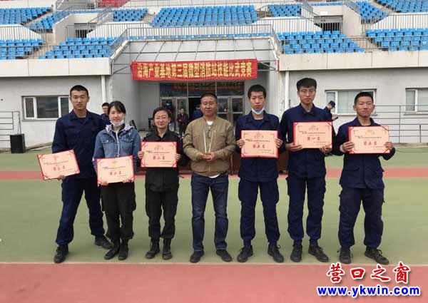经过一天紧张激烈的角逐,营口机场消防队获得竞赛团体第一名;在一人两盘水带连接操项目中,张允崇获得第三名、熊家华获得第五名;在40米手提灭火器灭油类火项目中,李昊阳获得第一名、佟雨航获得第五名;20米手提灭火器灭油类火,王鑫获得第二名、王珊珊获得第六名。