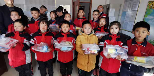 雷锋服务站为孩子们送去了430付棉手套、49件棉服并给那里的孩子送去了蔬菜,鸡蛋,卫生纸等生活用品价值1700多元。其中爱心人士方美玲为十三个特困孩子捐赠了学习用品价值800元。 红箭公益队长孙波也参加献爱心活动当中。盖州松树底小学杨校长介绍了学校的情况,并讲述那里有13位特殊情况的学生,有孤儿及特困学生。红箭公益团队队长对13名特困生计划长期关注。学生非常感动,表示好好学习长大后回报社会。