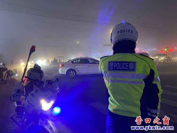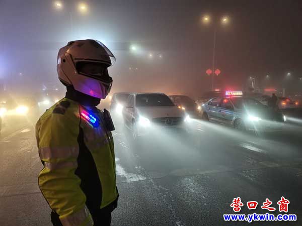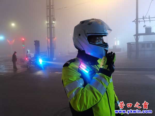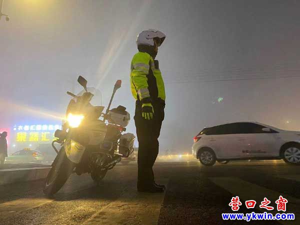 (营口之窗网讯 王宏鑫)1月26日,营口鲅鱼圈区突遇大雾天气,道路能见度极低严重影响了车辆安全行驶,为确保群众大雾天气安全出行。营口开发区公安局交警大队骑警中队,迅速开启恶劣天气应急响应机制,全警动员、全天在岗,加强道路交通疏导,防止发生交通拥堵和刮擦事故,确保我区道路安全、畅通、有序。